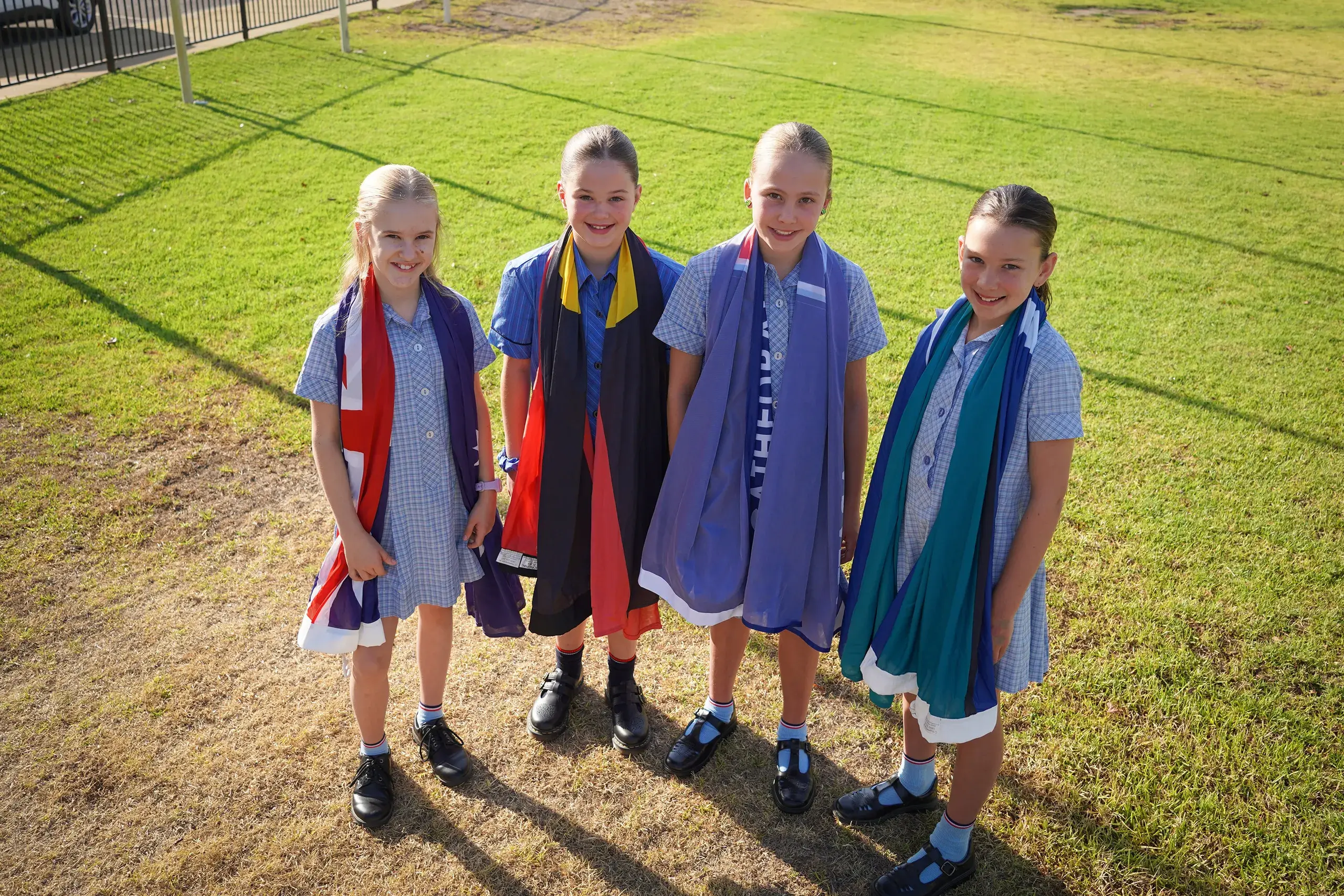 Year six students continue the tradition of raising the flags on the first day back at school.